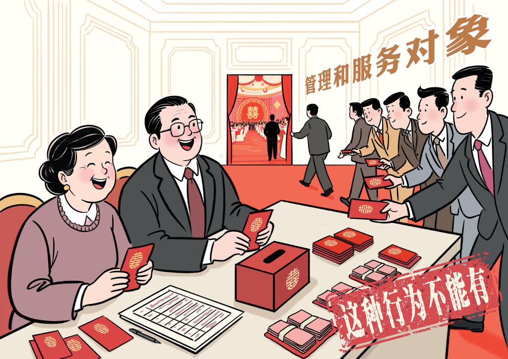 婚丧喜庆于每个家庭来说都是大事,无论是予以祝福还是寄托思念,是人之常情,也是人们在社会生活中的正当权利。但一段时间以来,操办婚丧喜庆成了“面子工程”,铺张浪费、攀比成风,平添负担。生日宴、升学宴、乔迁宴,甚至无事宴,花样百出。更有甚者,少数干部以此为名借机敛财,收受下属或管理服务对象礼金。如此奢靡之风、贪腐之象,怎能放纵?